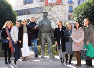 En un gesto simbólico de apoyo a la causa, el diputado encargado de la coordinación del Área Social en la institución, José González, acompañado de la diputada de ATM, Llanos Sánchez, junto a la presidenta de la AECC en Albacete, María Victoria Fernández, y al vicepresidente, Enrique Sainz-Pardo Lerm, han colocado el brazalete verde a las emblemáticas esculturas de Don Quijote y Sancho Panza, situadas en las puertas del Palacio Provincial.
