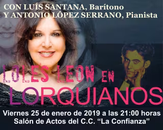 En este 2019 todavía con los últimos ecos del ciento veinte aniversario del nacimiento del gran poeta Federico García Lorca celebrado el pasado año, la popular actriz Loles León, el barítono zamorano Luis Santana y el pianista Antonio López ahondarán en sus poemas y en las eternas canciones, unas recopiladas del Cancionero Popular Español y otras de su puño y letra del genial poeta y dramaturgo más universal.