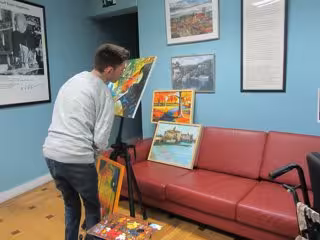 La asociación le concede una beca que le permite pagar sus clases de pintura, a las que acude martes y jueves y, como titular de sus derechos de autor, es también la encargada de "mover" sus cuadros, que el artista tiene que enviar a Liechtenstein, sede oficial de la organización, donde están depositados.