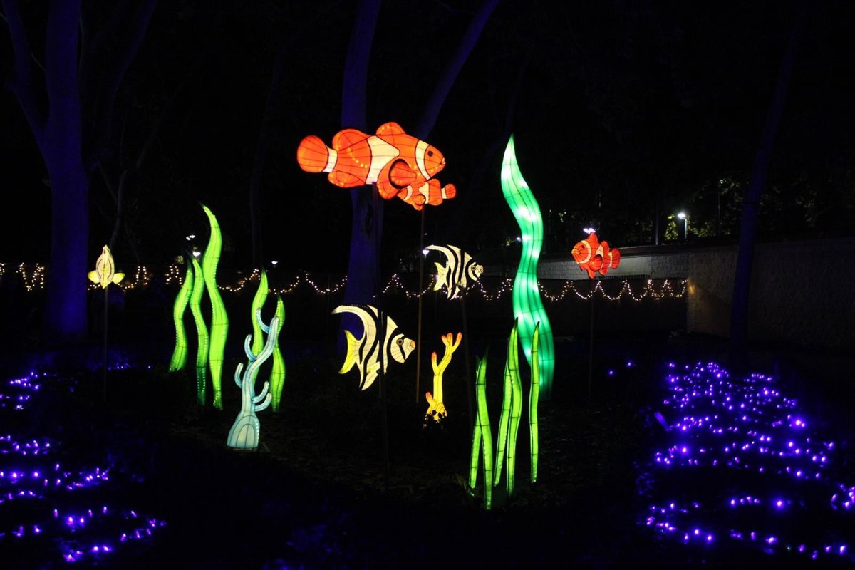 Más de doscientas piezas artesanales de animales, plantas y formas orgánicas dan vida a una docena de escenas repartidas por los parterres y otras zonas del parque, basados en la luminiscencia y con un sonido envolvente y sugerente.