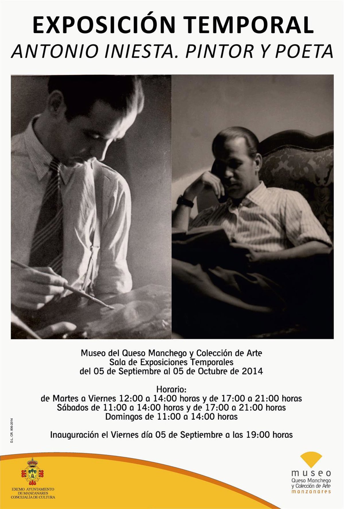 La Concejalía de Cultura del Ayuntamiento de Manzanares (Ciudad Real) ha organizado la exposición 'Antonio Iniesta. Pintor y poeta', en la que se podrá ver una "pequeña" muestra de la obra del artista para rendir homenaje a su pintor, quince años después de su muerte y 101 desde su nacimiento.