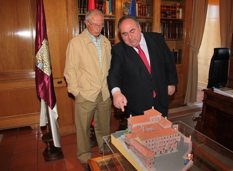 El vecino de la localidad toledana de Yuncler, Juan Bravo, ha hecho entrega al presidente de las Cortes de Castilla-La Mancha, Vicente Tirado, una maqueta de la propia sede del parlamento regional elaborada por él mismo.