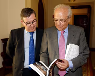 Al término de la reunión, el consejero de Cultura autonómico ha hecho entrega a Fernando Ledesma de un ejemplar de 'Toledo Secreto' de Juan Luis Alonso Oliva y David Utrilla Hernández.