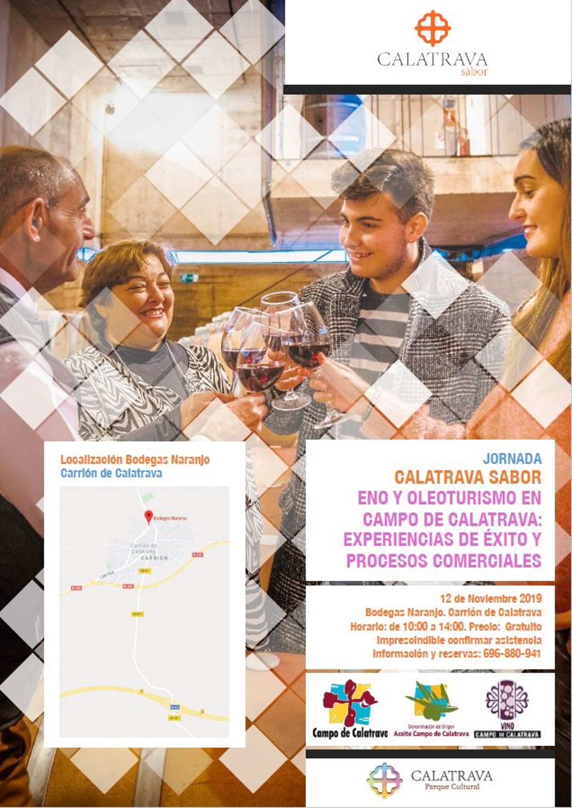 La Asociación para el Desarrollo del Campo de Calatrava, la Denominación de Origen Aceite Campo de Calatrava y la IGP para la Promoción del Vino del Campo de Calatrava organizan para este martes, 12 de noviembre, la jornada de presentación de 'Calatrava Sabor' bajo el título Enoturismo y Oleoturismo en Campo de Calatrava: Experiencia de éxito y procesos comerciales, que se desarrolla desde Calatrava Parque Cultural.