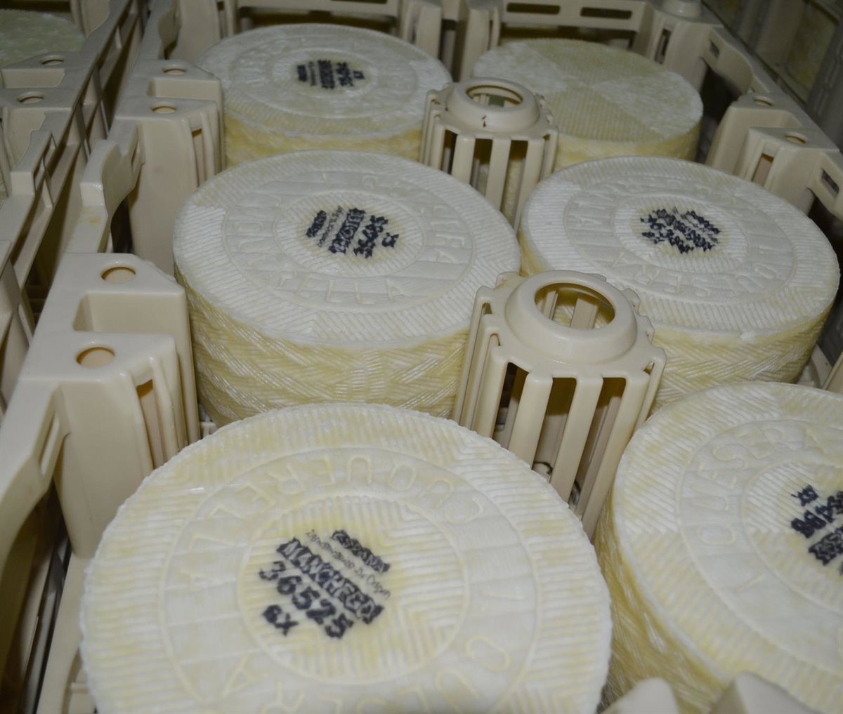 Finalmente, la placa de caseína es un distintivo único, ya que es el número de identidad del queso manchego; se trata de una combinación de cinco números y dos letras, exclusivos en cada queso.