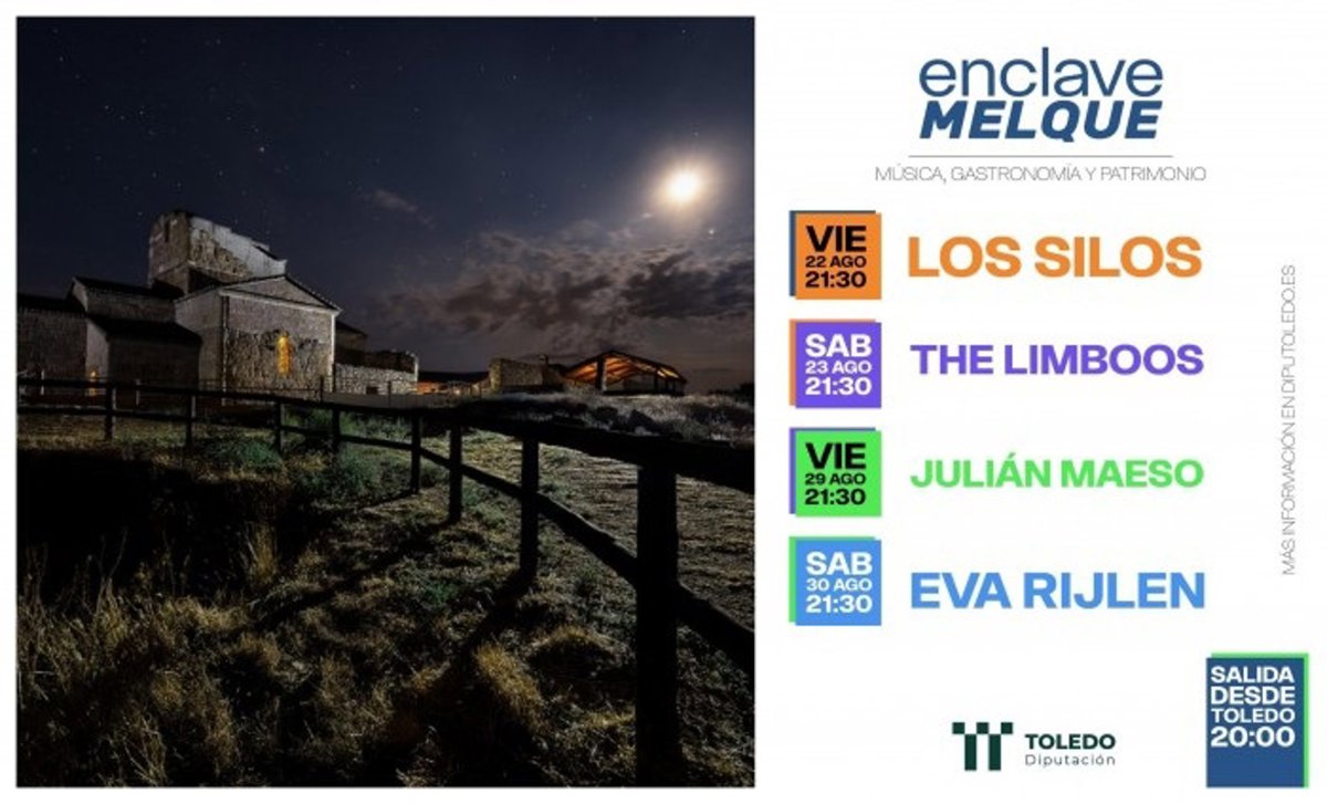 La Diputación de Toledo lanza este mes de agosto 'Enclave MELQUE 2025', una experiencia cultural inmersiva que fusiona música en directo, patrimonio y degustación gastronómica en el incomparable entorno del Sitio Histórico de Santa María de Melque, en San Martín de Montalbán.