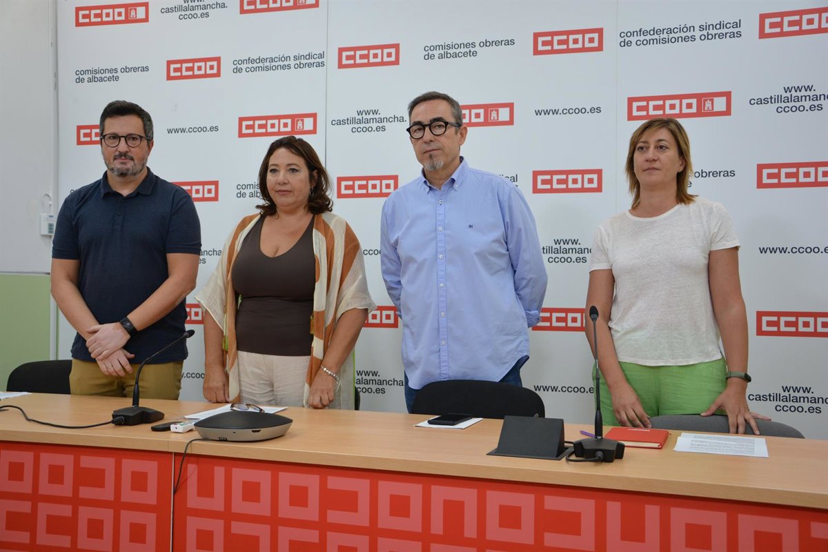 Responsables de CCOO, el secretario regional entre ellos, en rueda de prensa, - CCOO