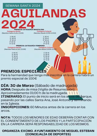 Coincidiendo con la madrugada de este sábado, 30 de marzo, al domingo 31, antes de finalizar la Semana Santa, Miguel Esteban disputará la popular Carrera de las Aguilandas, una tradición que se celebra en el municipio desde hace más de 200 años y que constituye la prueba deportiva más antigua y singular de la localidad.