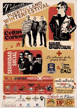 Mikel Erentxun, Celtas Cortos y Seguridad Social, junto a las bandas locales The Road y Chris Alan & Troublues, encabezarán el cartel de la cuarta edición del Puertollano Winter Festival, que tendrá lugar el 15 de febrero, a partir de las 18.30 horas, en el pabellón La Central de la ciudad minera.