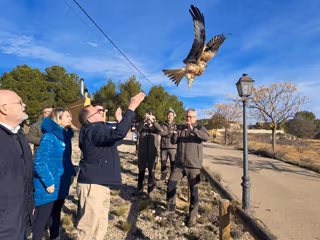 El Gobierno de Castilla-La Mancha ha participado este lunes, en la localidad albaceteña de Hoya Gonzalo, en la puesta en libertad de un milano real rescatado por los agentes medioambientales el pasado 16 de noviembre en un parque eólico de El Bonillo.