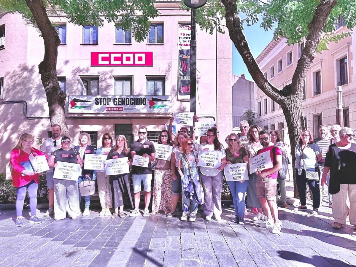 Comisiones Obreras de Guadalajara ha realizado este viernes un minuto de silencio en protesta por la siniestralidad laboral. Según el sindicato, dos trabajadores han fallecido esta semana en la provincia, uno el miércoles en un accidente laboral en la empresa Eiffage, --en el que otro trabajador resultó herido de gravedad--, y otro ayer en el IES Castilla de Guadalajara.