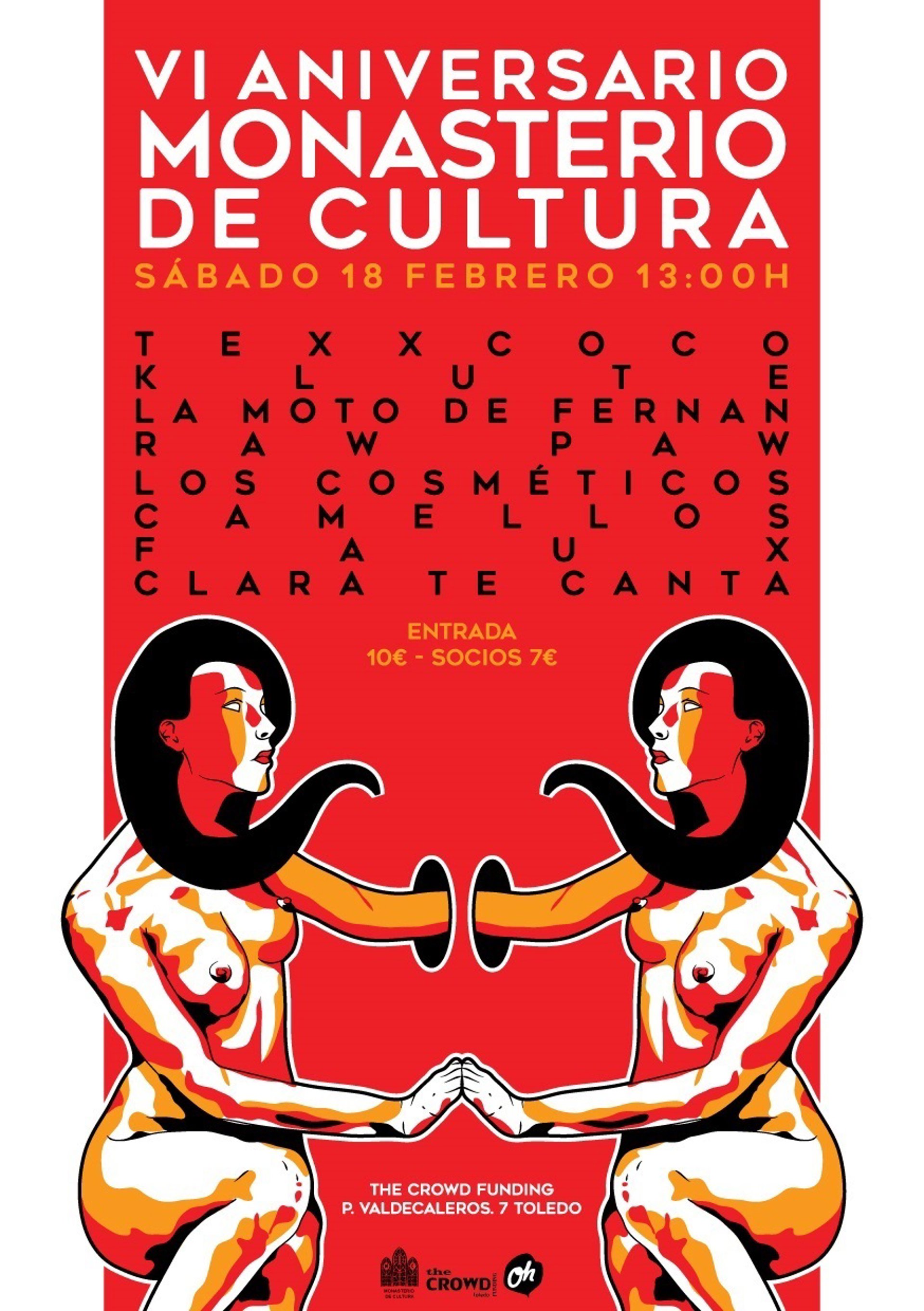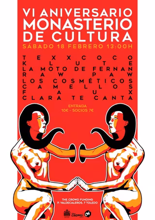 El próximo 18 de febrero, a partir de las 13.00 horas, las asociación el Monasterio de Cultura celebra su VI Aniversario en la sala The Crowd Funding de Toledo en el que reunirán a ocho grupos musicales y que contará con un mercadillo y varios DJ*s que amenizarán la jornada hasta la madrugada.
