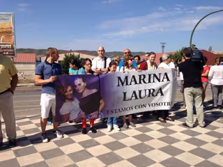 Cerca de un centenar de personas, entre familiares de las víctimas, amigos y ciudadanos, se han concentrado ante los juzgados de la capital portando una pancarta en la que se podía leer 'Laura y Marina estamos con vosotras', acompañada de una fotografía e ambas.
