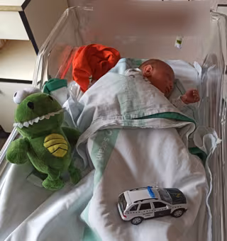Al día siguiente, ambos agentes visitaron en el Hospital tanto a la madre como al bebé, de nombre Thiago, al que llevaron como regalo un juguete, concretamente un vehículo de la Guardia Civil como recuerdo del día de su singular nacimiento.
