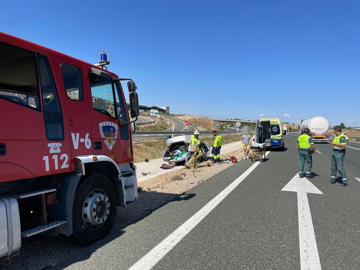 En el vehículo circulaban dos personas y mientras que una de ellas pudo salir del turismo por su propio pie, la mujer herida ha debido ser desencarcelada por bomberos del Servicio Provincial de Extinción y Prevención de Incendios (Sepei), para ser posteriormente trasladada en una ambulancia de soporte vital básico al hospital de Albacete.