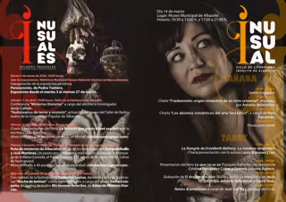 Junto al ciclo Inusual, Albacete acogerá la II edición de las 'Veladas Inusuales'. Una serie de encuentros que se desarrollarán a lo largo de todo el año y que refuerzan la continuidad de esta propuesta cultural, organizadas por la Asociación Cultural Gemela Malvada y la Diputación de Albacete, y cuentan con el apoyo y patrocinio de la Biblioteca Municipal, el Museo del Niño, EA! Teatro y Globalcaja.