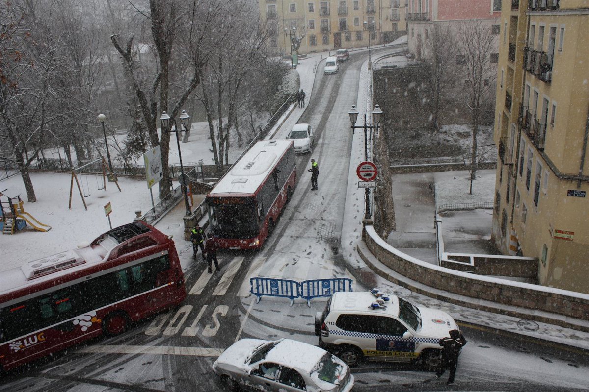 El Ayuntamiento de Cuenca ha cortado por precaución los accesos al Casco Antiguo por el Puente de la Trinidad y por la Puerta de Valencia a causa de la nieve.