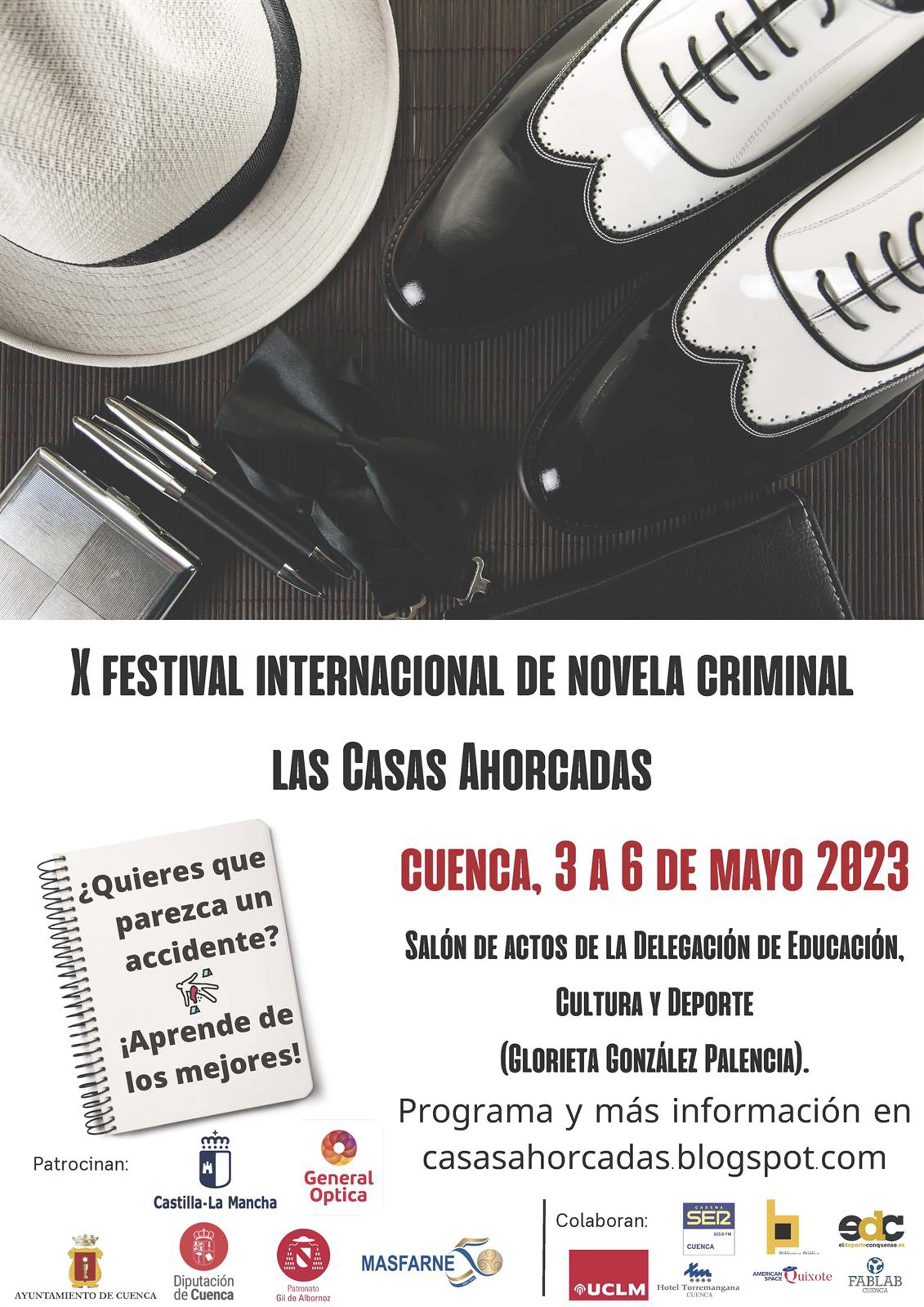 El menú de esta actividad incluye talleres de cine negro, audiolibros, criminología y microrrelato, en los que participarán algunos autores invitados al festival y se leerán los cuentos policíacos galardonados en el Premio Ángel Luis Mota para alumnado de Bachillerato, un premio convocado por el IES Alfonso VIII.