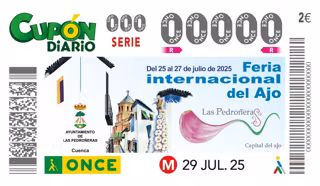 La ONCE dedicará el cupón del próximo 29 de julio a la Feria Internacional del Ajo de Las Pedroñeras (Cuenca) en reconocimiento a este importante evento que celebra ya su cincuenta y una edición.