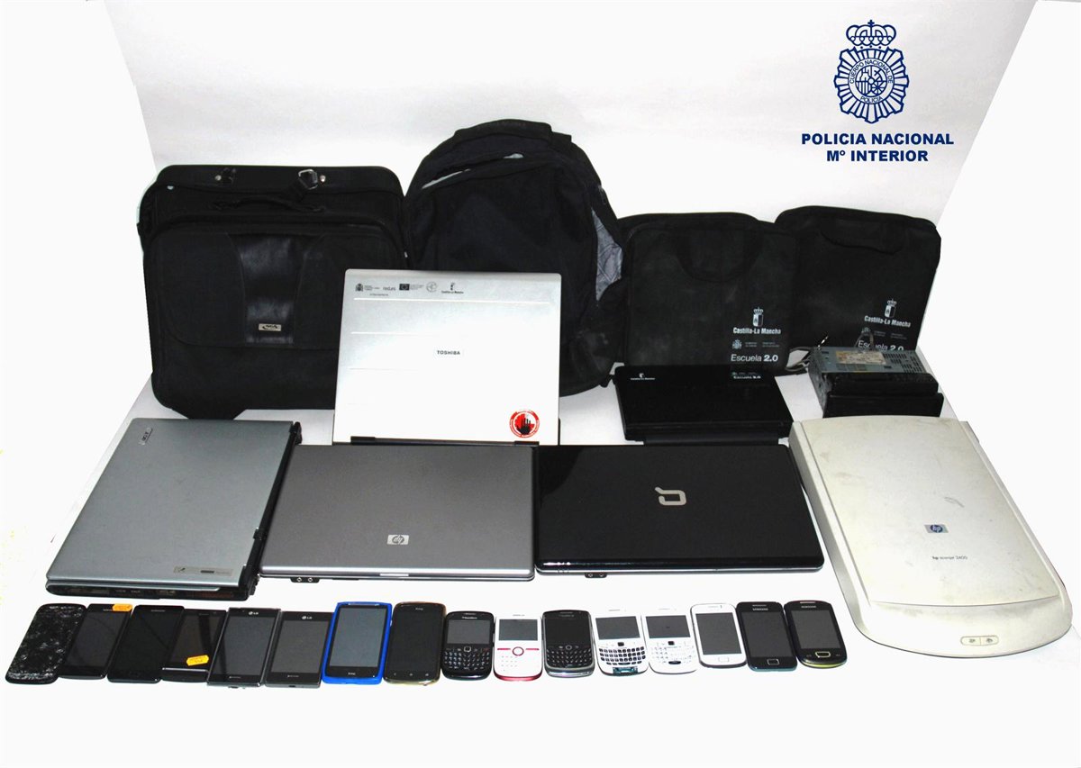 En dicho locutorio se practicó posteriormente un registro, interviniéndose numerosos objetos electrónicos y recuperándose la tableta y el ordenador sustraídos en el domicilio, así como otro portátil procedente de otro robo con fuerza ocurrido en un colegio a principios del pasado verano.
