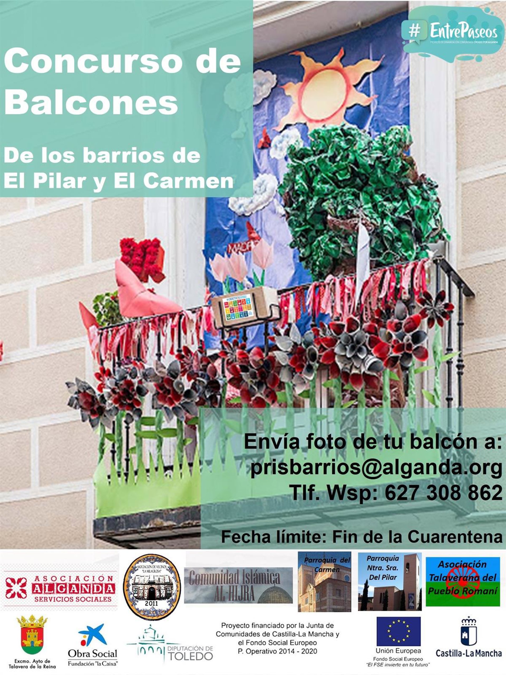 La Asociación Alganda (Proyecto #EntrePaseos) junto con la Asociación de Vecinos La Milagrosa 2011, la Parroquia del Carmen, la Parroquia Nuestra Señora del Pilar, la Asociación Islámica de Talavera Al-Hjira y Asociación Talaverana del Pueblo Romaní organizan durante la cuarentena causada por el coronavirus un concurso de balcones en los barrios El Carmen y El Pilar de Talavera de la Reina.