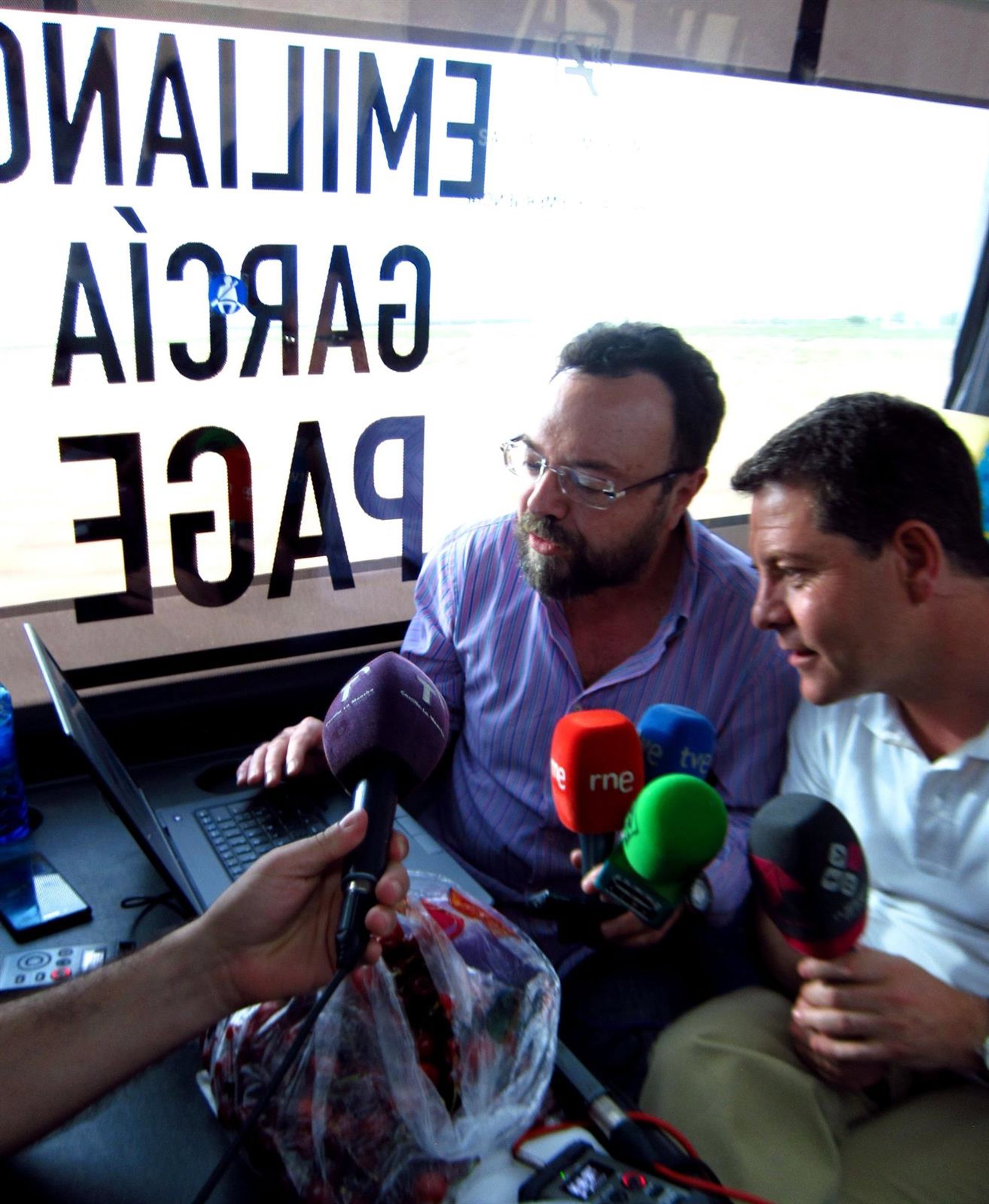 El candidato del PSOE a la Presidencia de Castilla-La Mancha, Emiliano García-Page, ha compartido trayecto y distendida charla con los periodistas que le acompañan en la caravana electoral, a quienes ha confesado que estos días duerme unas cuatro horas y que no toma nada para la voz ni para aguantar porque "la adrenalina de la campaña te pone en marcha".