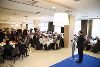 El presidente ha dicho que aunque "estamos intentando en España echarnos los tratos a la cabeza con las pensiones, pensando que es una ruina", a su juicio, "la verdad es la manifestación de un país que cada vez va a tener que estrujarse más la cabeza para ver como financia tantos años de vida".