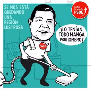 Un Emiliano García-Page con bata de médico, como un pastor con sus ovejas, de currito de la construcción, mochilero, con un capote torero o pasando la aspiradora, son algunas de las facetas en las que se puede ver al presidente regional y candidato a la reelección del PSOE repasando su gestión en coloridas viñetas y con comentarios muy manchegos dentro de la web www.mejorconpage.es.