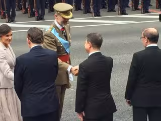 El desfile ha estado presidido por los reyes Felipe y Letizia, acompañados por el presidente del Gobierno, Pedro Sánchez, los presidentes del Congreso, Ana Pastor, y del Senado, Pío García-Escudero, ministros y autoridades militares, autonómicas y locales.