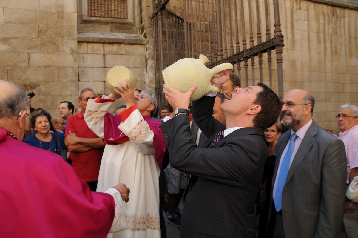 García-Page, quien ha participado en la tradicional misa y en la posterior tradición de beber de los botijos en la Catedral Primada de Toledo, ha comentado que esta festividad se celebra en muchos municipios de España lo que a su entender significa "un abrazo a los españoles y españolas en el ecuador del mes de agosto".