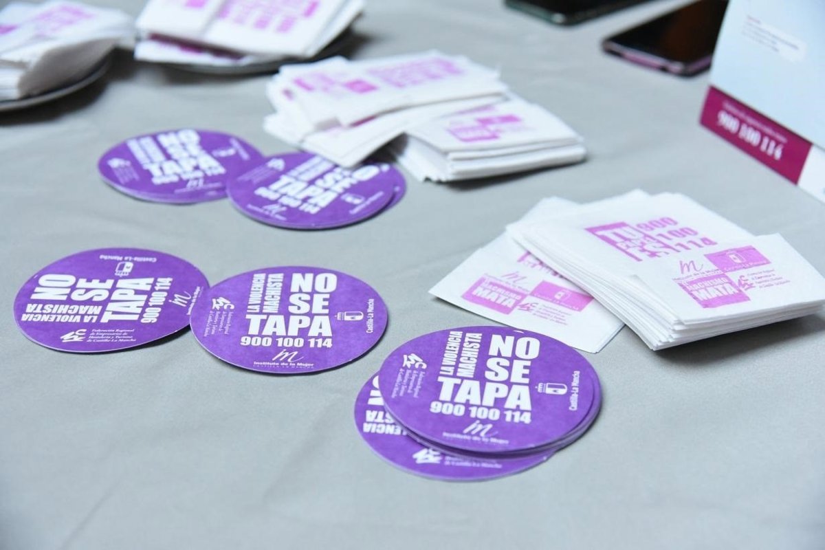 Dentro de la campaña se han distribuido 600.000 posavasos con el lema 'La violencia machista no se tapa', 100.000 unidades más que el año pasado, ya que hay más establecimientos que se quieren adherir a la iniciativa. Este año son más de 700 los establecimientos en toda Castilla-La Mancha que se han querido sumar a esta campaña. Asimismo, se repartirán 2,5 millones de servilletas con el lema: 'Tu papel es clave'.