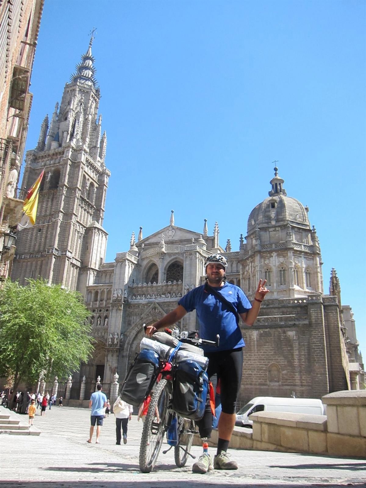 Ionut Preda, atleta paralímpico natural de Timisoara (Rumanía) y afincado en Barcelona, ha pasado por Toledo preparando su proyecto 'El paralímpico viajero. Pedaleando por un sueño' con el que pretende recorrer en los próximos años más de 150 países de todos los continentes sobre su bicicleta, con la dificultad añadida de que lo hace con una sola pierna.