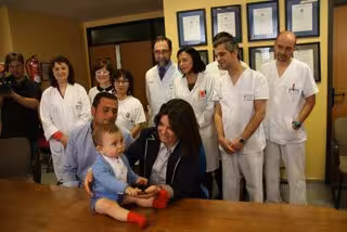 El bebé operado hace 10 meses en el Hospital General 'La Mancha Centro' de Alcázar de San Juan (Ciudad Real), mientras seguía unido al cordón umbilical, está "en perfecto estado" y únicamente tiene como secuela "una pequeña cicatriz en el cuello".