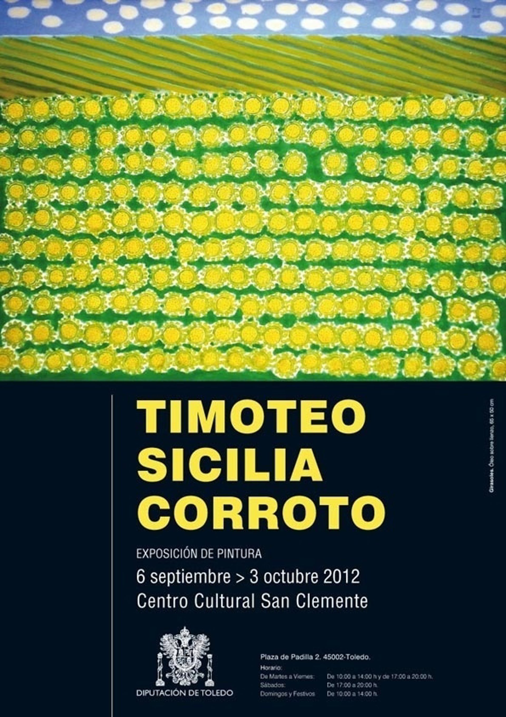 El Centro Cultural San Clemente, gestionado por la Corporación provincial, acoge desde el jueves, 6 de septiembre, a las 19.00 horas, una interesante Exposición de pintura al óleo del pintor galveño Timoteo Sicilia, autodidacta y caracterizado por su estilo personalísimo, propio de una afición desarrollada en su tiempo libre, que ha dotado su pintura de una expresión peculiar y diferenciadora.