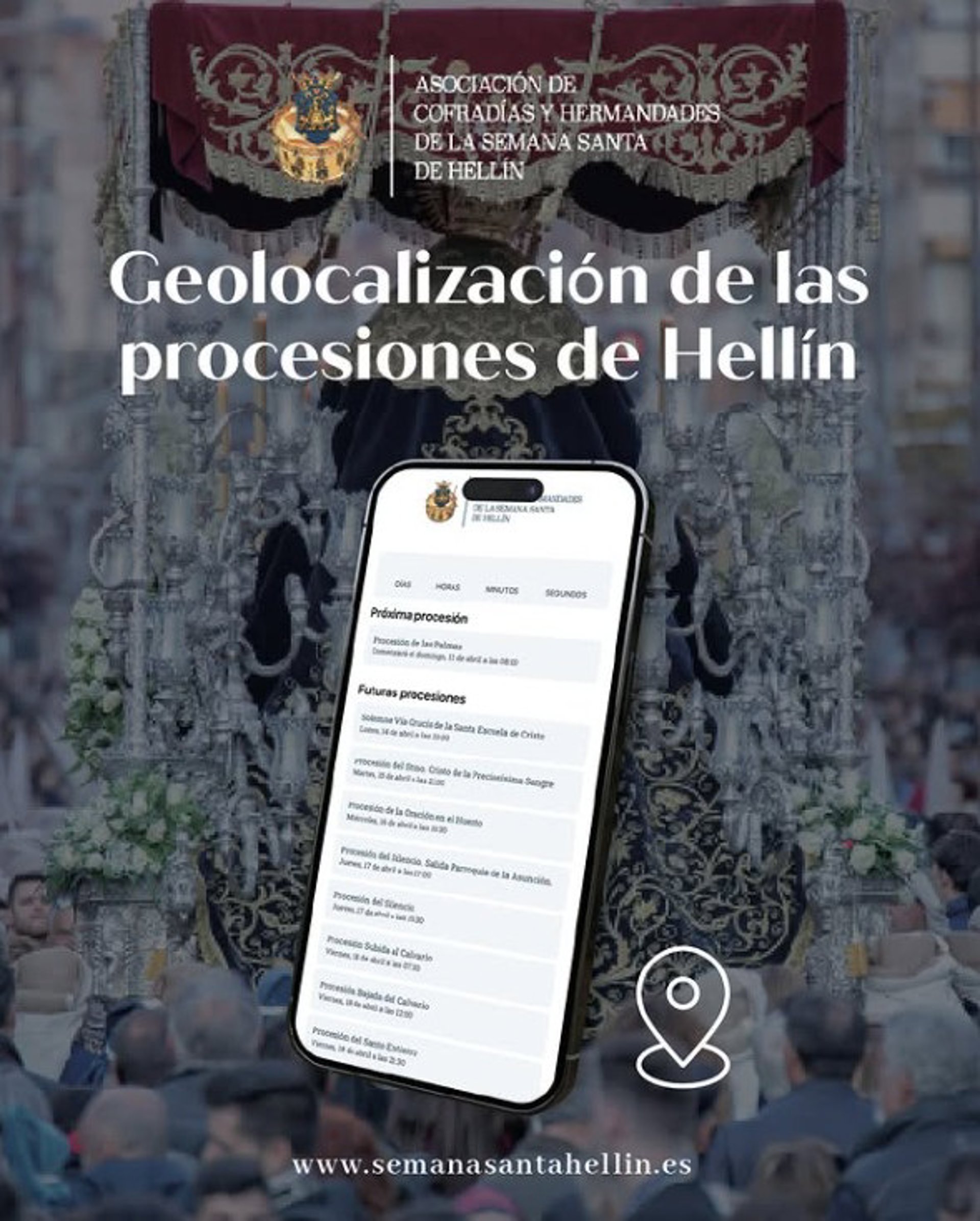 Una plataforma de geolocalización permitirá acceder este año a información en tiempo real de las procesiones de la Semana Santa de Hellín, comenzando por la de las Palmas de este domingo, día 13, que saldrá a las 8.00 horas de la iglesia de la Asunción.