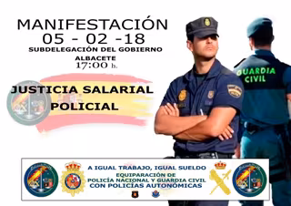 Bajo el lema 'A igual trabajo, igual sueldo', JUSAPOL ha convocado un acto de protesta este lunes, a partir de las 17.00 horas, ante la Subdelegación del Gobierno de Albacete.