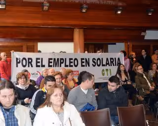 Tras la visita a la Subdelegación del Gobierno esta mañana, los trabajadores de Solaria se han dado cita en el pleno de la Corporación municipal acudiendo en bloque, para exponer la situación por la que atraviesan, siendo apoyados unánimemente por el plenario.