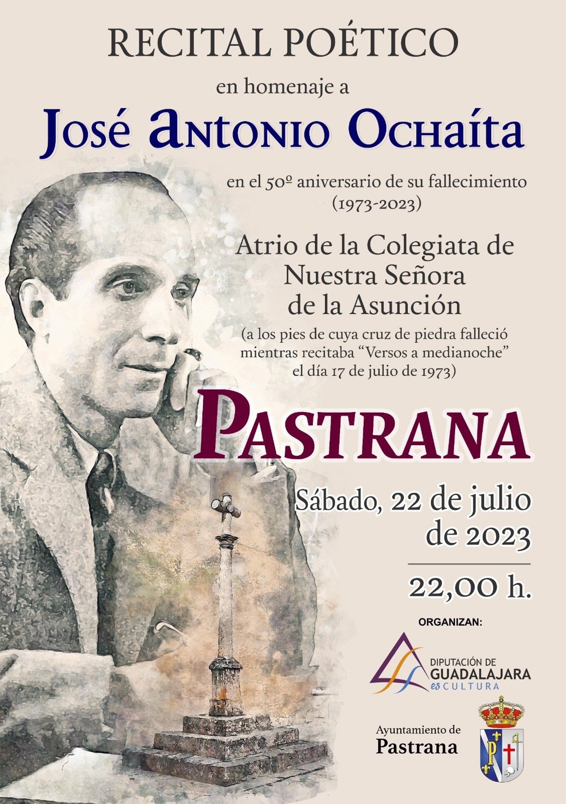 El próximo lunes, 17 de julio, se cumplirán 50 años del fallecimiento, durante un recital que se estaba celebrando en Pastrana, del poeta José Antonio Ochaíta, nacido en Jadraque y que da nombre al Premio Provincia de Guadalajara de Poesía, que cada año convoca la Diputación Provincial.