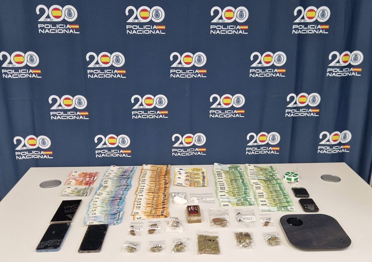 Con toda la información recopilada, finalmente se ha realizado un registro en el domicilio, logrando la detención de los dos autores y la incautación de tres teléfonos móviles, 5.580 euros en efectivo, 15 gramos de cocaína, 20 gramos de marihuana y 156 de hachís, dispuestos en dosis para su venta al por menor.