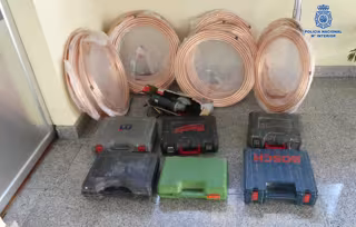 Gracias a esta llamada, así como a la inmediata respuesta de varios radiopatrullas de la Policía Nacional, ha podido detenerse a cuatro varones que después de acceder a la obra saltando la valla perimetral ya habían logrado apoderarse de varios rollos de cable de cobre y maletines de herramientas.