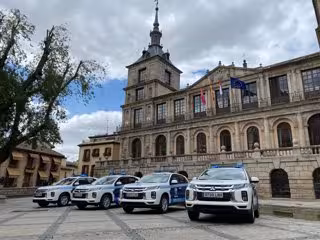La alcaldesa de Toledo, Milagros Tolón, ha presentado este viernes en la plaza del Ayuntamiento cuatro nuevos vehículos para la Policía Local, lo que ha supuesto una inversión de 132.000 euros.