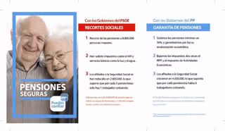 En contraposición, cita a los gobiernos del PP como "garantía de pensiones", ya que cuando gobernaron, señala, "subieron las pensiones mínimas un 30 por ciento y garantizaron por ley su revalorización automática". Además, destaca que el Ejecutivo de Aznar bajó los impuestos (dos veces el IRPF y el impuesto de Actividades Económicas), al tiempo que los afiliados a la Seguridad Social crecieron en 4.500.000, lo que suponía que por cada pensionista había seis trabajadores cotizando.