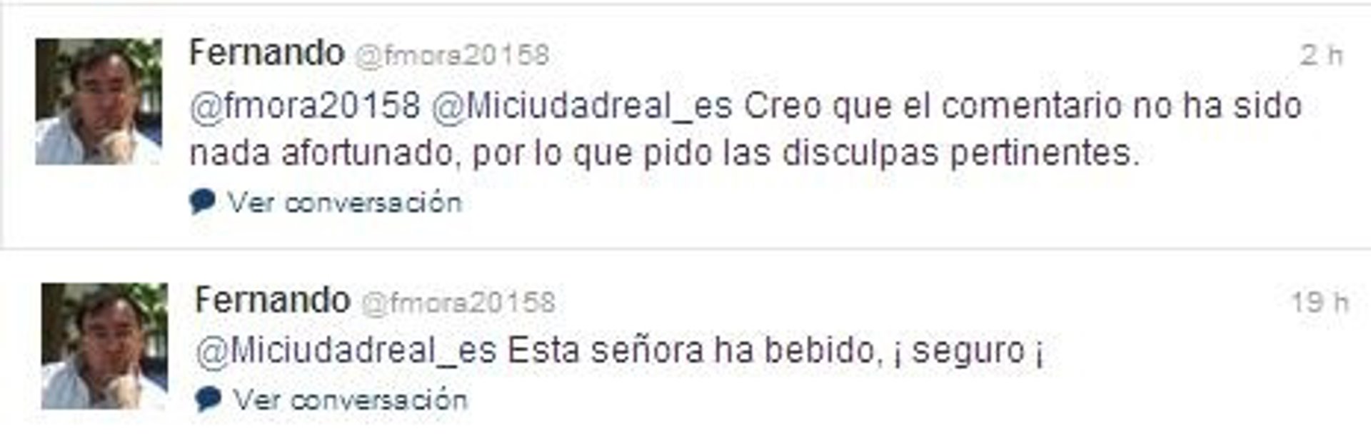 En rueda de prensa, la diputada del PP ha condenado que el pasado sábado Fernando Mora, después de que la consejera de Empleo y Economía dijese en Tomelloso que hay datos positivos que evidencian que las medidas económicas del Gobierno regional están funcionando, lanzara un tweet en su cuenta personal de la red social diciendo: "Esta señora ha bebido, seguro!".
