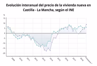 Así las cosas, el precio medio de la vivienda libre varió en Castilla-La Mancha un 3,2% en el tercer trimestre de 2018 en tasa interanual, frente al 1,4 que aumentó hasta el mes de junio.