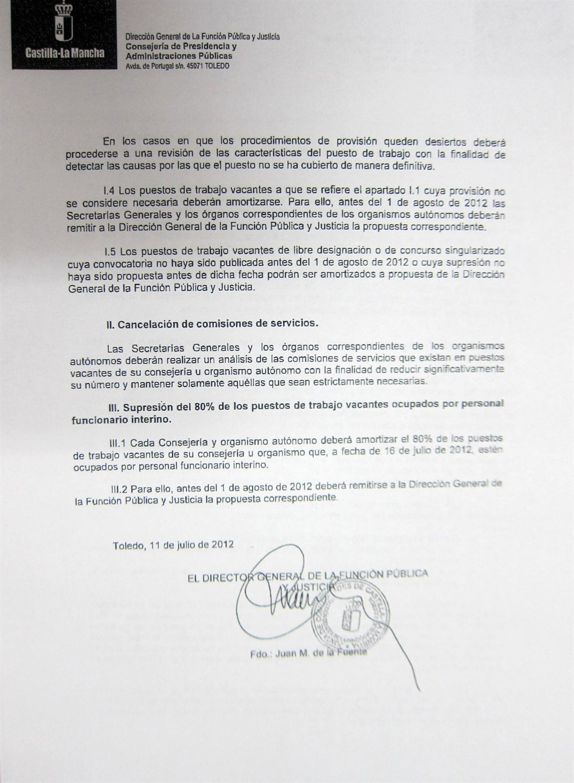 "Para ello, antes del 1 de agosto de 2012 deberá remitirse a la Dirección General de la Función Pública y Justicia la propuesta correspondiente", añade el escrito, firmado por el director general de la Función Pública y Justicia, Juan M. de la Fuente.