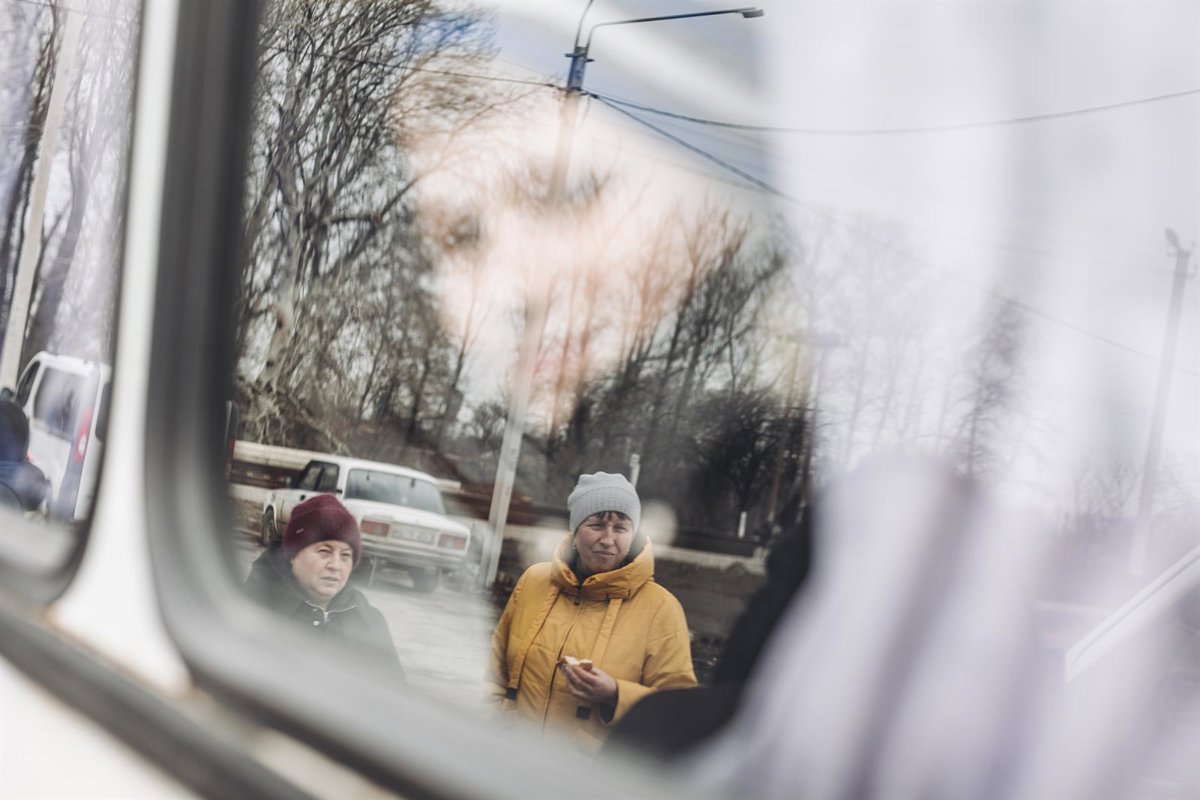 Dos madres observan el autobús donde envían a sus niños al oeste del país, a 24 de febrero de 2022, en Lisichansk, Oblast de Lugansk (Ucrania). L - Diego Herrera - Europa Press