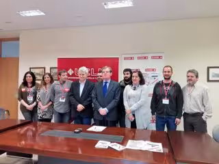 Durante la firma, que ha tenido lugar en el Campus de Toledo, Collado ha estado acompañado del secretario general de CCOO en la región, José Luis Gil, y otros miembros de Jóvenes CCOO.