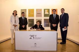 De su lado, el alcalde de Cuenca ha mostrado su agradecimiento por el honor que supone contar con la presencia de Su Majestad en un acto que coincide con la conmemoración del Día Internacional del Patrimonio Mundial y en un año muy especial para el Grupo, que celebra sus bodas de plata en el Año Europeo del Patrimonio Cultural. "Decidimos que 2018 tenía que ser especial, donde se pusiera de manifiesto el importante trabajo en común desarrollado durante los 25 años de existencia", ha indicado.