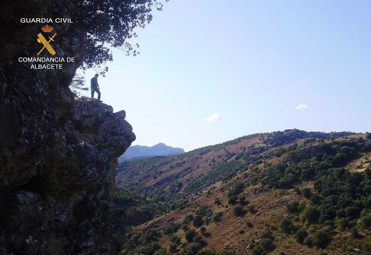 Hasta el lugar del suceso, al que únicamente se puede acceder a pie por lo abrupto del terreno, se desplazaron primeramente efectivos de la Guardia Civil de Yeste, quienes localizaron al accidentado tendido en el suelo y acompañado de su esposa.