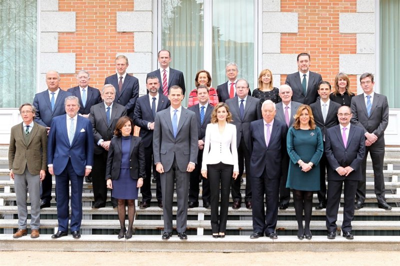 Según han explicado fuentes de Casa Real a Europa Press, se trata de la primera reunión de la Comisión que presiden los monarcas --a quienes corresponde la presidencia de honor de la Comisión-- en la que han estado presentes la vicepresidenta del Gobierno y ministra de la Presidencia en funciones y presidenta de la Comisión, Soraya Sáenz de Santamaría; el ministro de Asuntos Exteriores y de Cooperación en funciones, José Manuel García-Margallo; el ministro de Educación, Cultura y Deporte en funciones y vicepresidente primero de la Comisión, Íñigo Méndez de Vigo; la presidenta de la Junta de Andalucía, Susana Díaz; el presidente de Aragón, Francisco Javier Lambán; el presidente de la Junta de Comunidades de Castilla-La Mancha, Emiliano García-Page; y el presidente de la Junta de Castilla y León, Juan Vicente Herrera.